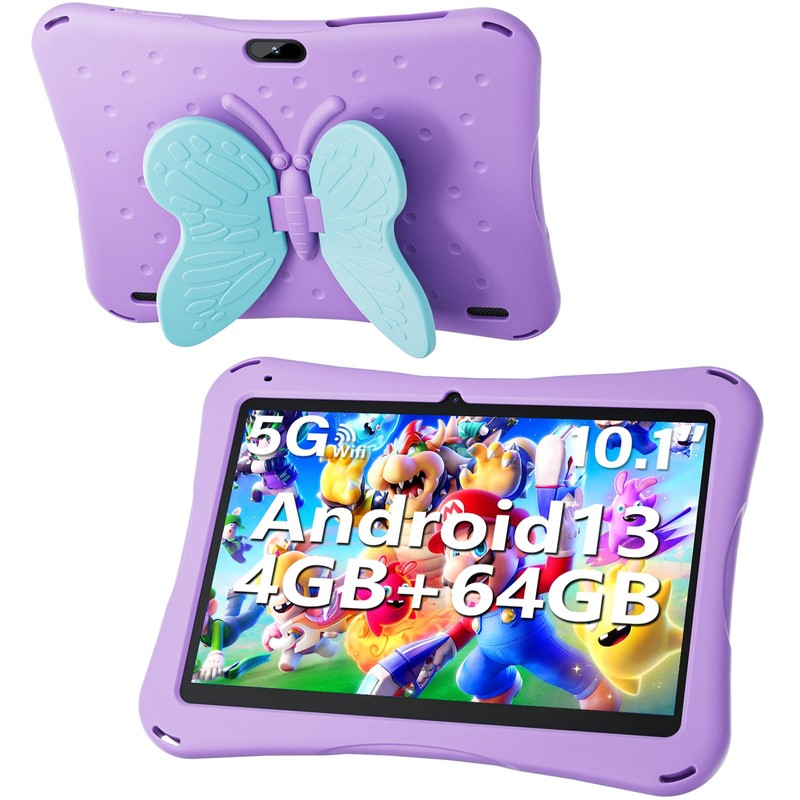 - 【High Performance Android Tablet】 This kids tablet Equipped with 4(2+2Expand)GB RAM and 64GB ROM, highly integrated A133 1.6Ghz quad-core processor, WiFi, Bluetooth. The 1.6 GHz quad-core processor is 20% faster than other normal processors. Supporting TF Card to extend up to 34GB. Take selfies, pictures and videos with the 2MP front-facing camera and 5MP rear camera.