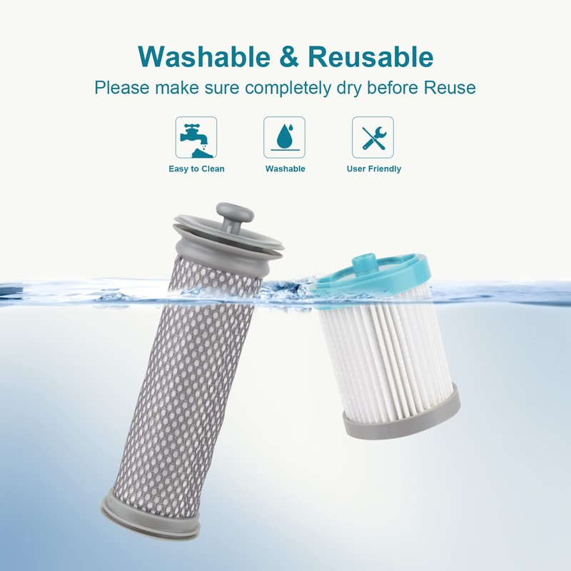 - EINFACH ZU AUSTAUSCHEN & WASCHBAR - Das Filterset rastet ein und kann ohne Werkzeug einfach ausgetauscht werden. Der Vorfilter ist sp1lbar. Bitte unter flie?endem kaltem Wasser absp1len und 24 Stunden trocknen lassen, bevor Sie es erneut installieren. Um die Saugleistung des Staubsaugers zu erhalten, wird empfohlen, das Filterset alle 3-6 Monate auszutauschen.
