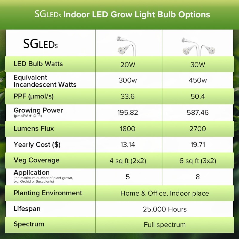 SGLEDS LED Grow Lights, 450W Full Spectrum Gooseneck Clamp Grow Lamp, 30W Power Plant Light with High PPFD for Seeding, Lifetime Free Bulb Replacement
