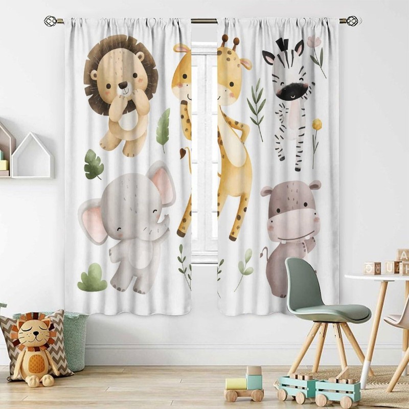 SGLyuliang Nursery Curtains, Jungle Curtains, Safari Curtains for Nursery, Giraffe Painted Curtains Animal cub Curtains for Nursery Kids Room Classroom W63xL63 Inch