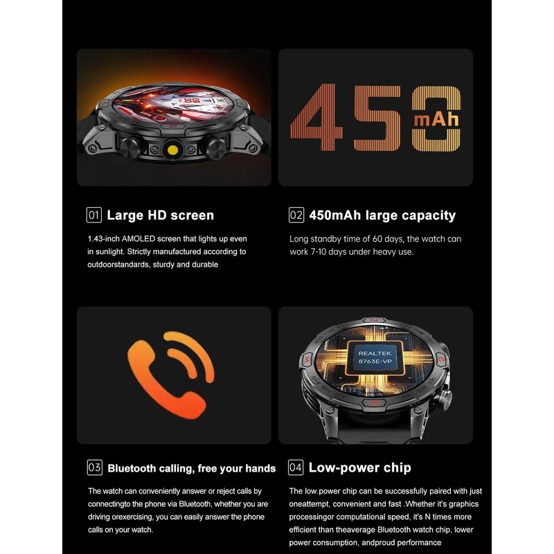 • 【Why choose AMOLED display】1.43-inch round AMOLED touch screen smart watch, 466*466 HD resolution, can be clearly seen even in bright sunlight, the colors are more vivid than traditional LCD screens