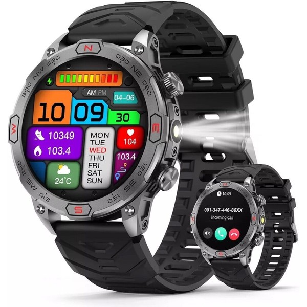• 【450mAh Ultra-Long Battery Life & LED Flashlight】The mens smart watches have a 450mAh ultra-large battery capacity, which takes only 2 hours to charge, 7-10 days of use, and 60 days of standby time.