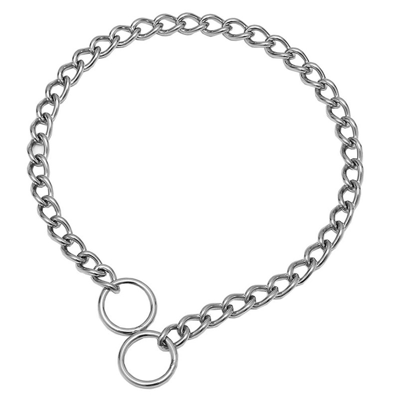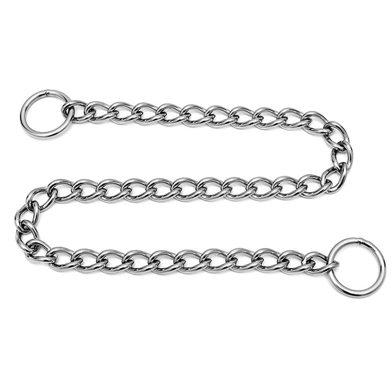 Material: 304 stainless steel/SUS304 SIZE: Length 19 inch after the chain collar get it together. Leash attachment: O-ring attachment, easy on and put off Safe and effective way to train your dogs with our chain collar , Designed to tighten under tension, correct the wrong behavior by pulling the leash with a gentle but effective feedback **Size Guide** : For choke collars, measure the circumference of pet’s neck and add 2"–3" 2.0 mm thikcness,0.8" loop width, adjustable from 12" to 15" 2.5 mm thikcness,1.0" loop width, adjustable from 15" to 19" 3 mm thikcness,1.2" loop width, adjustable from 18" to 21" 3.5 mm thickness,1.4" loop width, adjustbale from 19" to 23" 4 mm thickness,1.6" loop width, adjustbale from 20" to 25" Safe effective dog training tools with proper use, These training collar provide a heavy-duty safe alternative to standard choke chains For dog relate product please search brand **‘SGODA’**