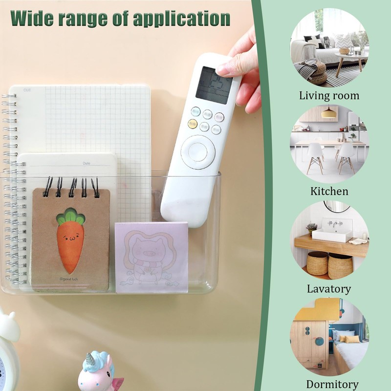 NO MORE AIMLESS SEARCH FOR ITEMS: Let you no longer search everywhere for the remote control or keys. Place them on the adhesive remote holder wall mount. The transparent design of the wall pocket enables you to see the items you are looking for immediately.