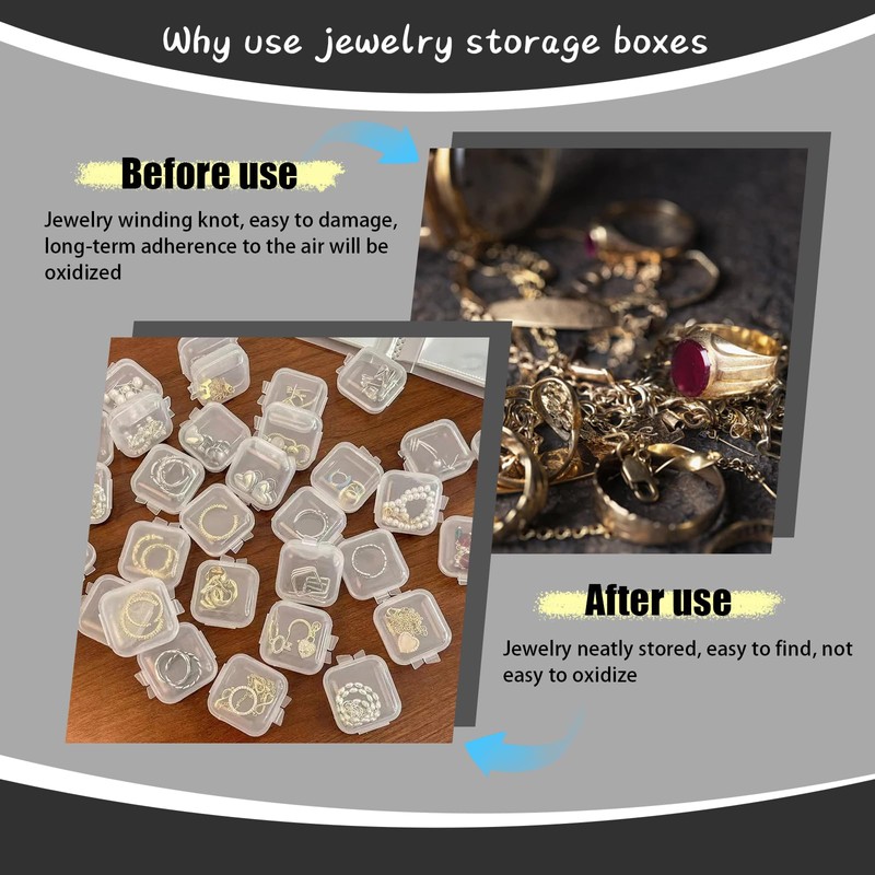 - Packaging Dimensions: You will get small clear jewelry containers with dimensions of 3.5x3.5x2 cm/1.4x1.4x0.8 inches - small yet spacious, ideal for travel without taking up much space.