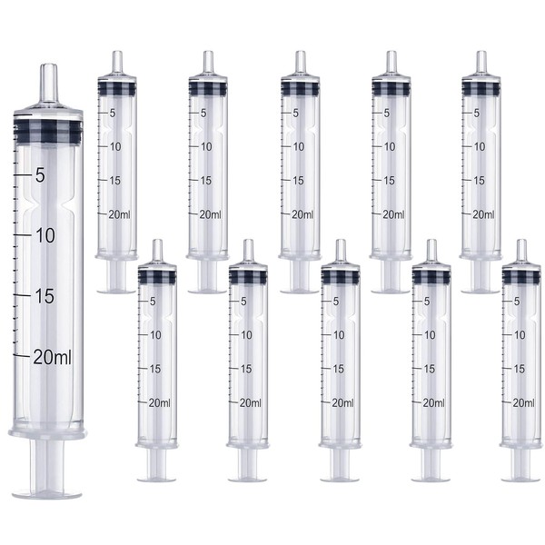 SGQTGIMU Pack of 10 Syringes 20 ml, Syringes 20 ml Plastic Syringe Feeding Syringe Disposable Syringe for Animal Feeding, Plant Watering and Laboratory Individually Packed