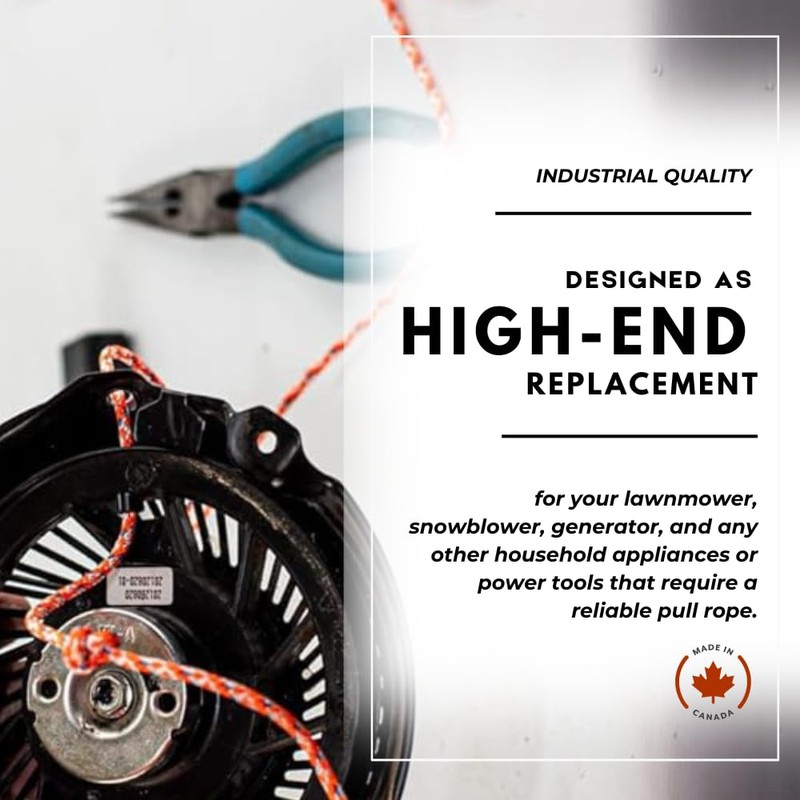 • POLYESTER PULL CORD - A durable and long-lasting engine starter cord made from industrial quality Polyester. Designed as a high-end replacement for your lawnmower, snowblower, generator, and any other household appliances or power tools that require a reliable pull rope.