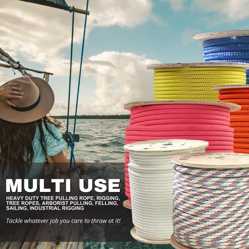 Perfect as a tree rope for hanging a swing, securing a flagpole, or as an arborist for pulling trees, this versatile rope is also well-suited for camping tarp guy lines, marine applications, and hunting gear. Its non-absorbent polyester design ensures it’s the ideal nautical companion, excelling as a halyard or anchor line.