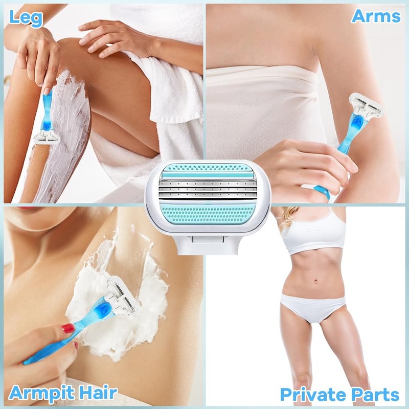 - Shaving without damaging the skin: Our women's razor blades consist of three layers of L-shaped blades (0.02 mm spacing). The blades are polished with German technology, adapt easily to the contours of the body and allow a precise and gentle shave. The flexible 45° blade is suitable for the bikini area, armpits and legs, making it the best choice for shaving women