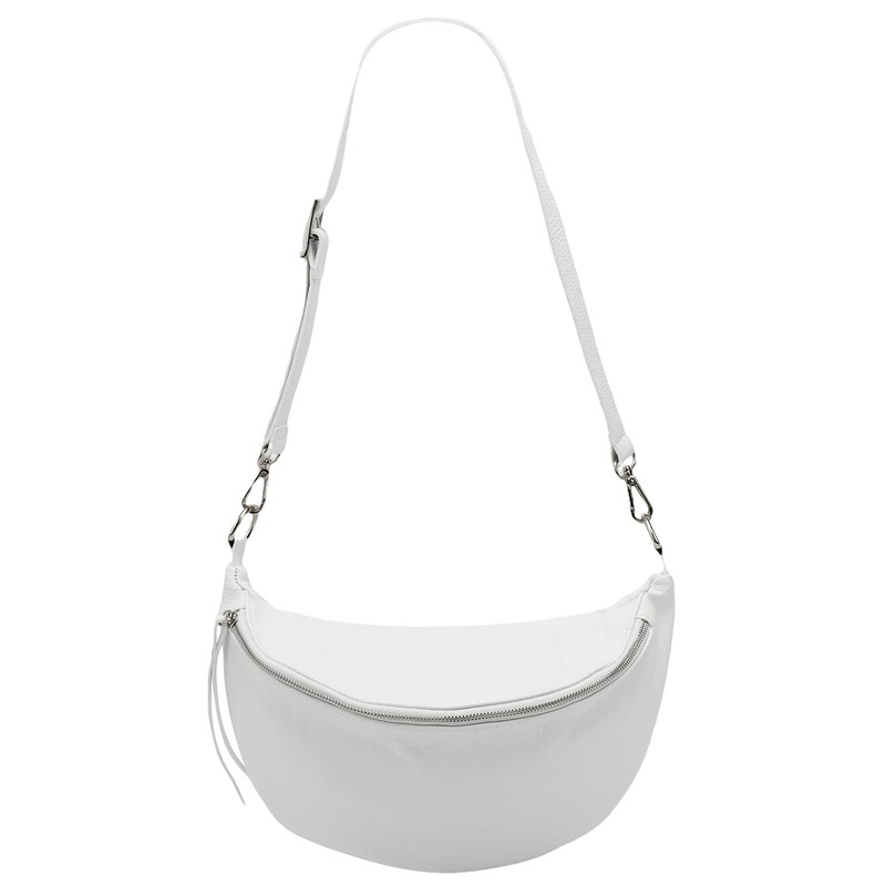 SH Leder Greta G747 Genuine Leather Women's Unisex Chest Bag for Festival Travel Medium Waist Bag Crossbody Bag Adjustable Shoulder Strap Women Leather Bag 37 x 21 cm, White, Gross, Belt bag