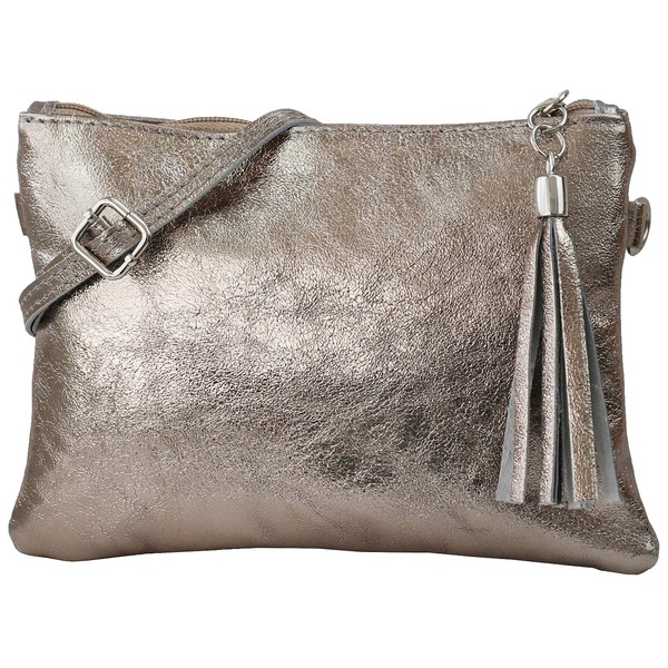 SH Leder Real Leather Shoulder Bag, Clutch Bag, Small Evening Bag, 22 x 15 cm, Anny, G248, bronze, Small