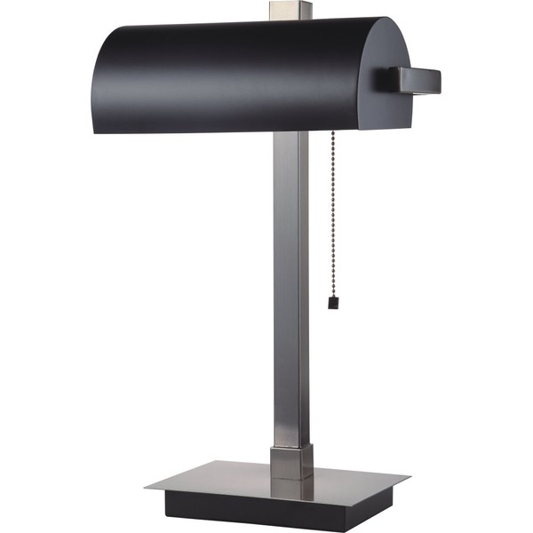 SH Lighting 31187SN-BK Banker Style Lamp with Pull Switch, Silver/Black