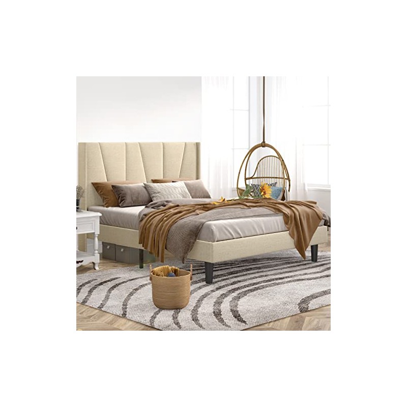 - 【Minimalism Style】This upholstered platform bed frame shape is different from the traditional thick soft-packed bed, which introduces a simple and elegant element into the space. Especially the simple flush and wall fitting design allow more space to move around and reduce the collisions and cramps feeling of the bedroom.