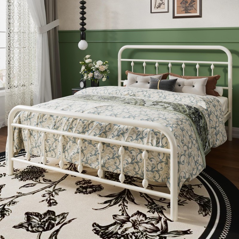 - Victorian Design: With its sinuous curves and intricate beadwork, this metal bed frame captures the romance of Victorian design while embracing vintage character. A chameleon in any space, it enhances modern minimalism, rustic farmhouse warmth, or traditional opulence
