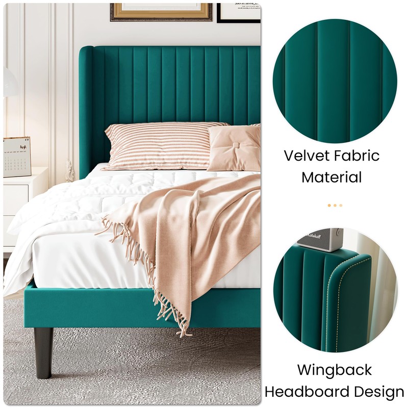 • Modern Wingback Headboard: The full bed frame is beautifully upholstered in soft velvet and features a wingback headboard design, adds a stylish touch of glamour to any home decor