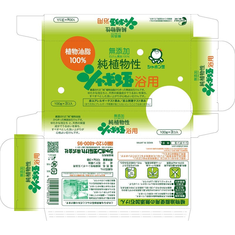 Shabondama Additive-Free Soap, Pure Vegetable Soap for Baths, 3.5 oz (100 g) x 3 Packs