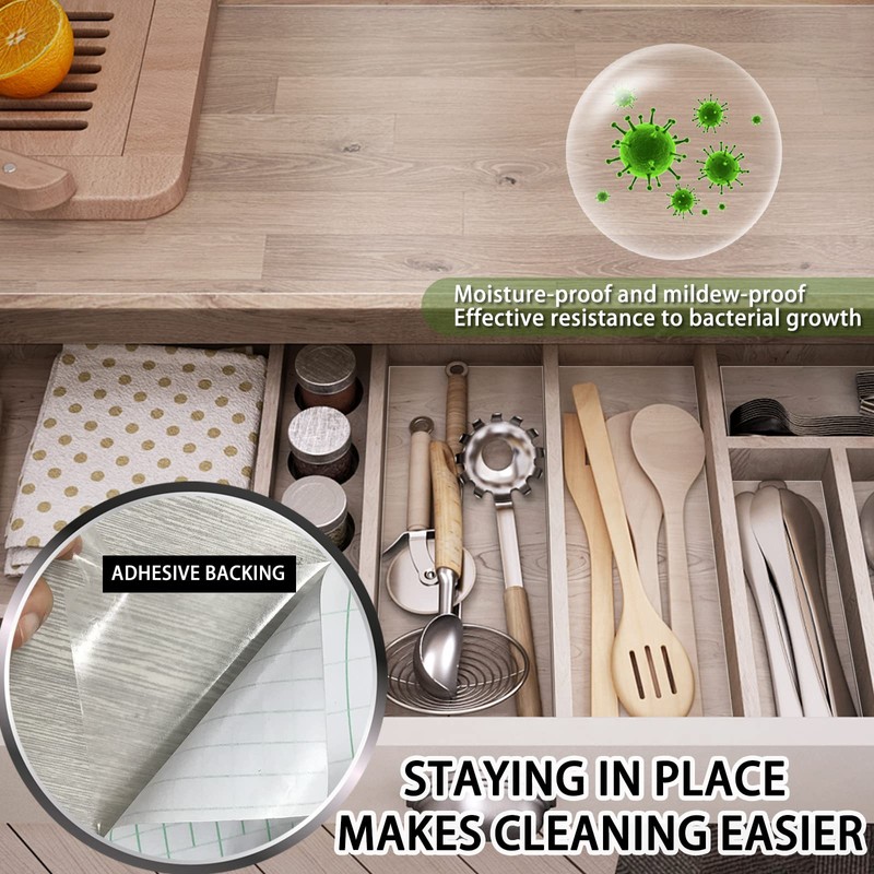 • 2 Rolls 15.7in X 9.84ft Clear Contact Paper. It is a shelf/drawer liner. 15.7in x 9.84ft/roll (15.7in x 118in). Clear glossy effect. Self-adhesive & heat-resistant, anti-scratch, waterproof, oil-proof and easy to clean.