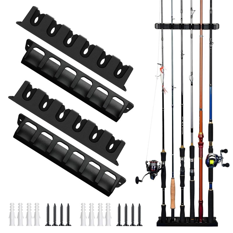 - Space-saving fishing rod storage stand: 1 pack fishing rod wall holder can store 6 fishing rods and reduce collisions with reels. Choose a thin wall to store the rods and help organize your fishing gear by spending less time preparing for fishing and more time fishing. Hang your rod in seconds after a long day of fishing. Quick, easy and practical