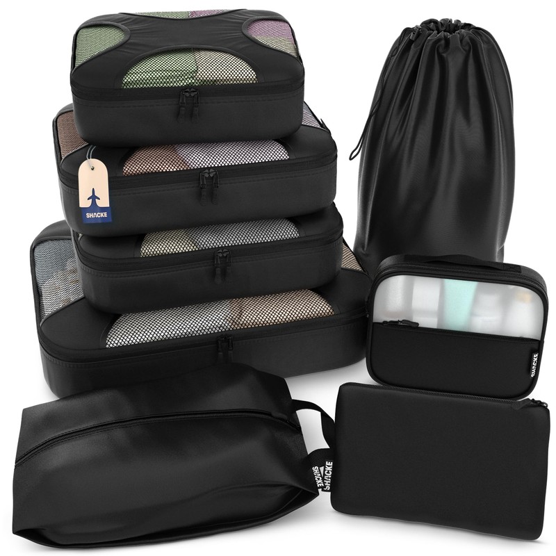 Shacke - Juego de 8 cubos de embalaje para viaje, organizador de equipaje ligero (negro)
