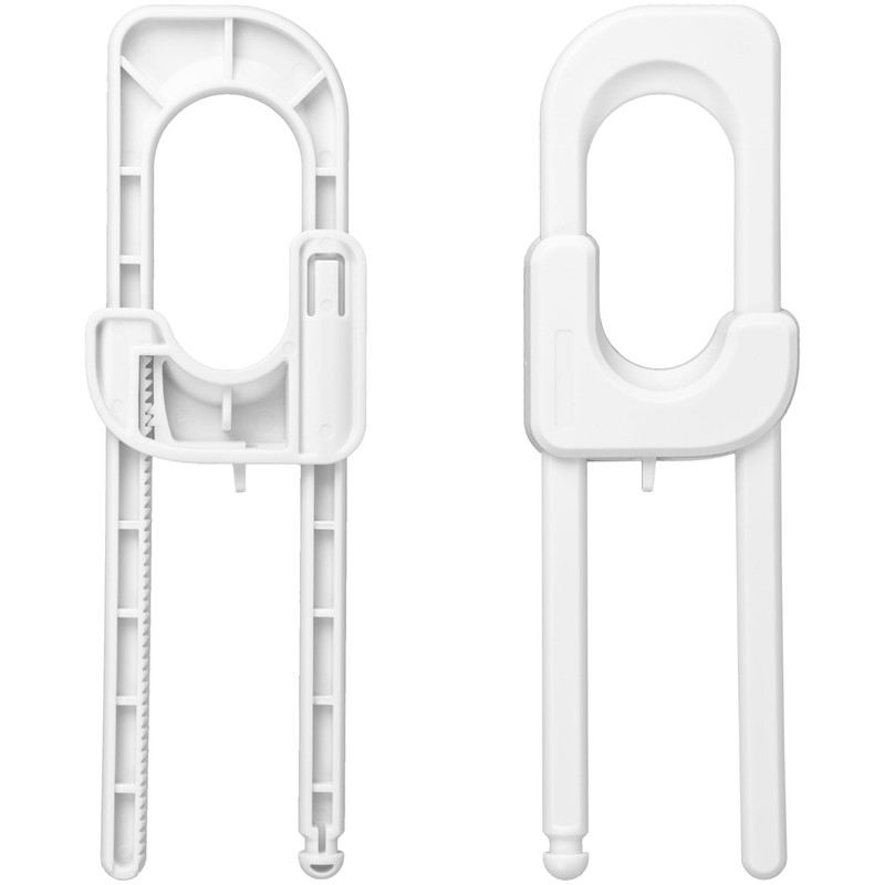 - Box contents: pack of 2 U-shaped children's cabinet locks, in white, made of plastic, for most handles and knob shapes, with child-safe mechanism.