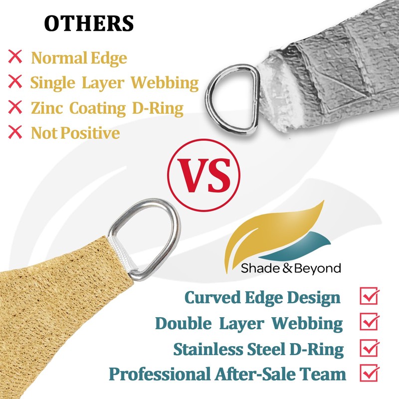 Shade&Beyond Custom Sun Shade Sail PPT007 8'x8'x8' Triangle Sail Shade Canopy for Patio UV Block for Outdoor Facility and Activities, Sand, (We Make Custom Size)