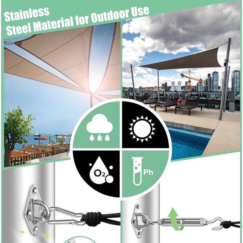 - Sufficient Supply: Simplifies assembly using turnbuckles and hooks, with a 44-piece kit designed for comprehensive functionality and diverse installation options, enhancing flexibility for outdoor shade projects
