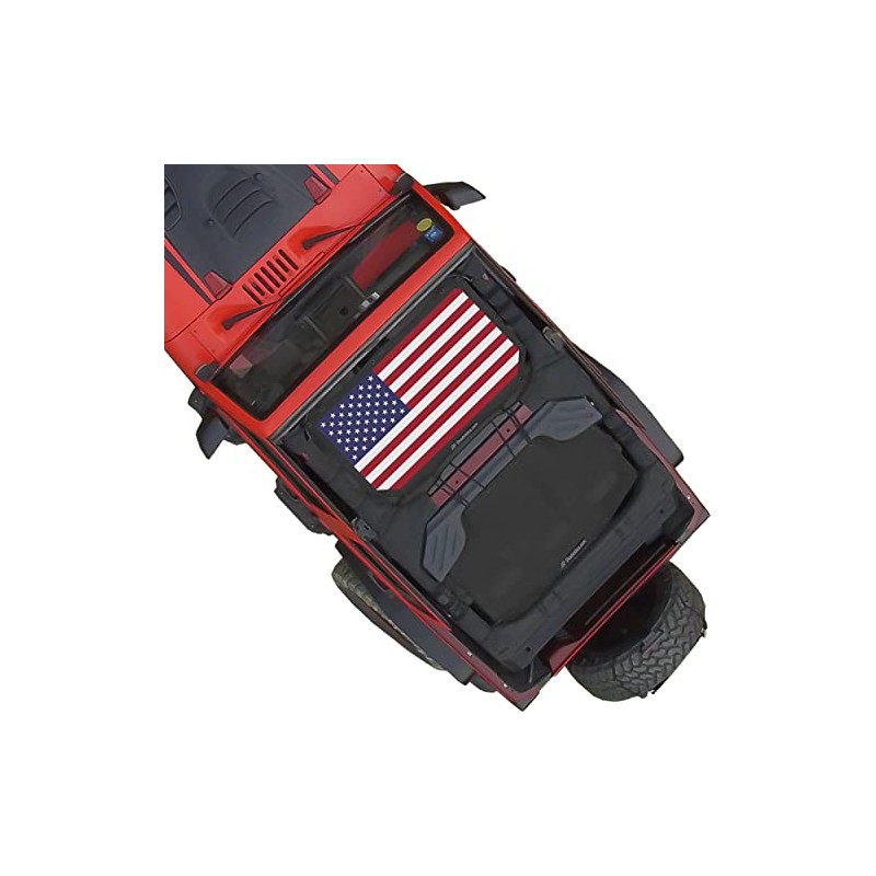 Original America Ink STABLEAND SUPER CLEAR UV Printing looks custom design. And 20+ colors Jeep JK mesh top Shade for chose, customized sunshade available for Jeeps since 2005,comes with random color mesh storage pouch (color may different to sun shade ),Bungees, premium oxford zipper storage bag.