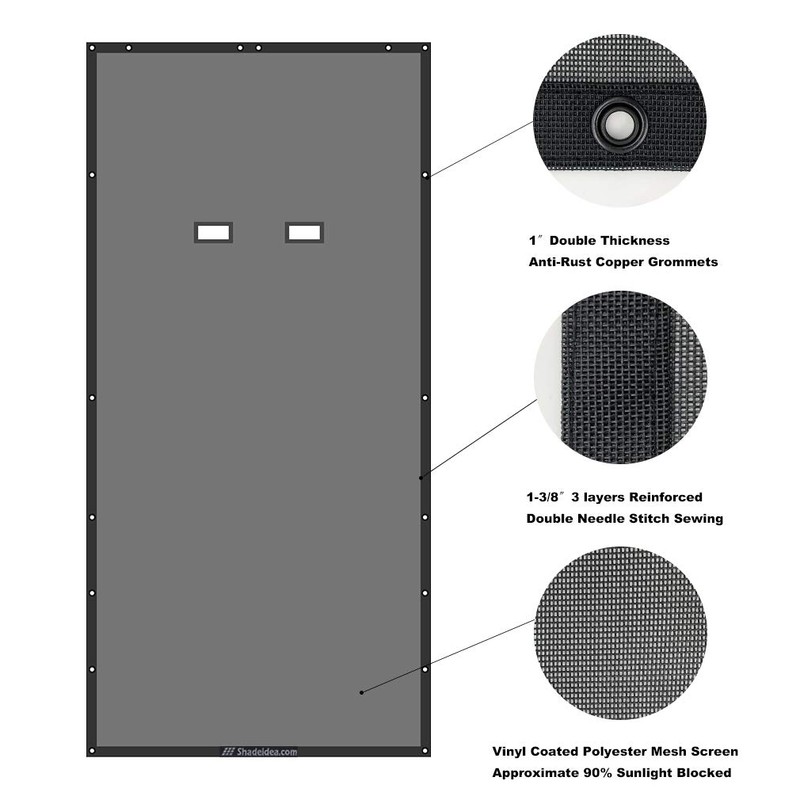 • STRONG MATERIALS: Vinyl coated super high strength polyester Mesh Screen, 3 layers folded edge with double needle stitch sewn, Black finished double thicker copper grommets made.