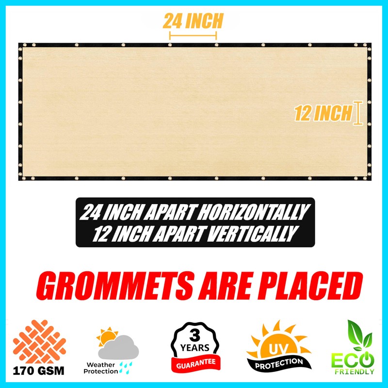 ShadeMart 5' x 12' Fence Privacy Screen Beige Heavy Duty 170 GSM Fencing Mesh Shade Net with Grommets & Zip Ties, 90% Blockage Fence Screen for Balcony Yard Outdoor Garden Pool (We Customize Size)