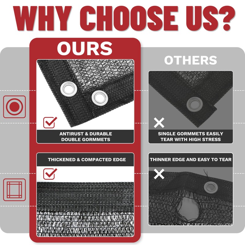 - 50% Shade Rate: Shademart Shade Cloth blocks 50% of sunlight, reducing solar exposure and lowering temperatures. It promotes airflow, reduces water evaporation
