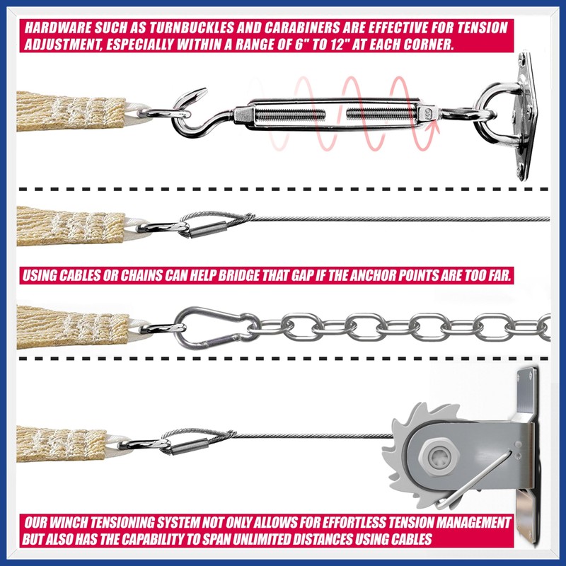 • Wildly Uses: with the proper hardware kits, sun shade sails can be attached to almost any structure such as poles, trees, wall, roof, etc. Applied for the patio, carport, pergola, tent, pool, yard, even window