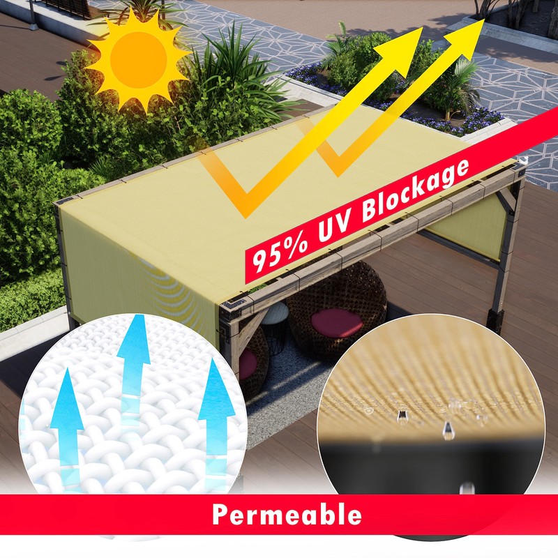 - 95% UV Blocking: Stay protected from the sun's harmful rays with our Pergola Cover, blocking up to 95% of UV rays, let you enjoy a cool outdoor time. Its breathable fabric allows air and water to pass through, ensuring comfort in any season.