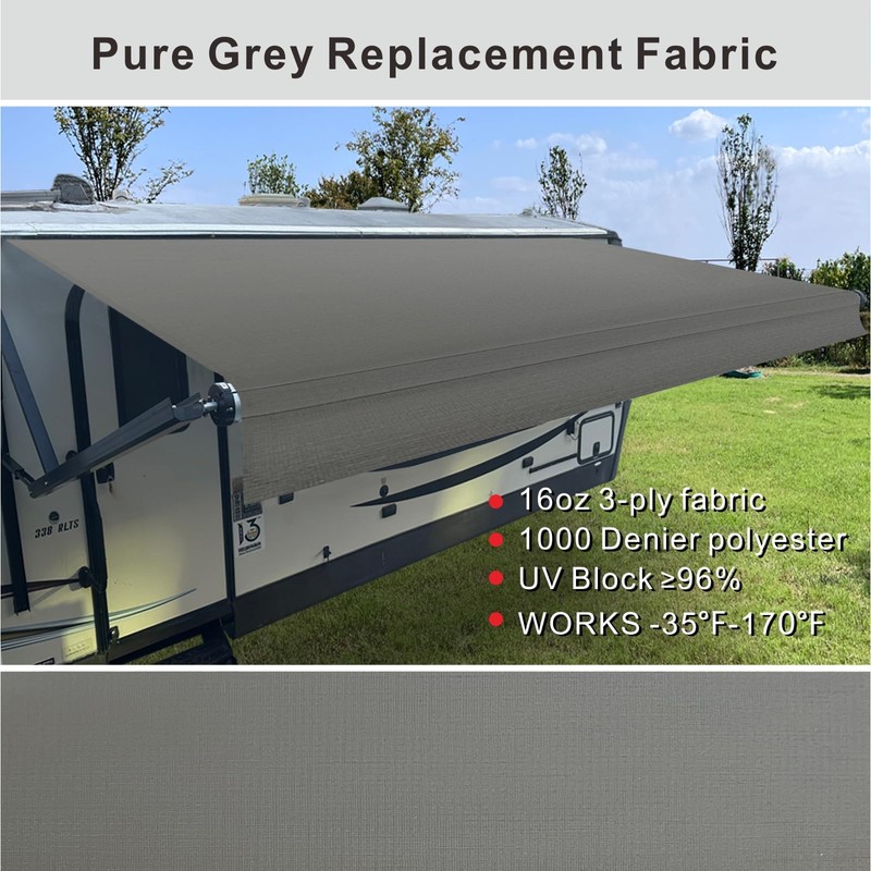 - RV AWNING FABRIC REPLACEMENT:Replacing the fabric of your RV awning not only gives it a fresh new look but also extends its life span. It helps to prevent further damage caused by wear and tear, such as fading, tearingThis upgrade can significantly improve your overall RV travel experience, making it more enjoyable and comfortable.