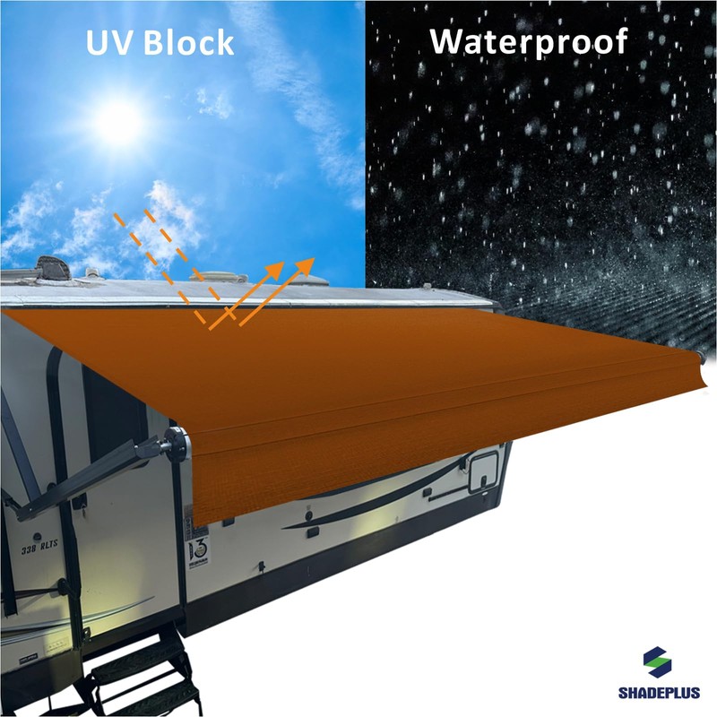 SHADEPLUS SHADEPLUS RV Awning Fabric Replacement,Camper Awning Replacement,16 oz Waterproof Vinyl Universal RV Awning Replacement for All Brands Camper,Trailer, Motorhome Awnings,Both Sides Dyeing Cocoa 17'2'