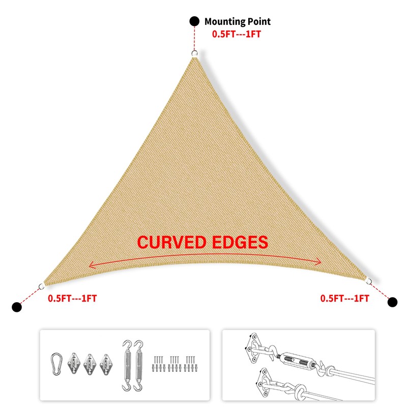- Measurement is taken from corner to corner, edges are made slightly curved based on precisely calculated radian, prevent shade sail from sagging in the middle for best appearance and performance.
