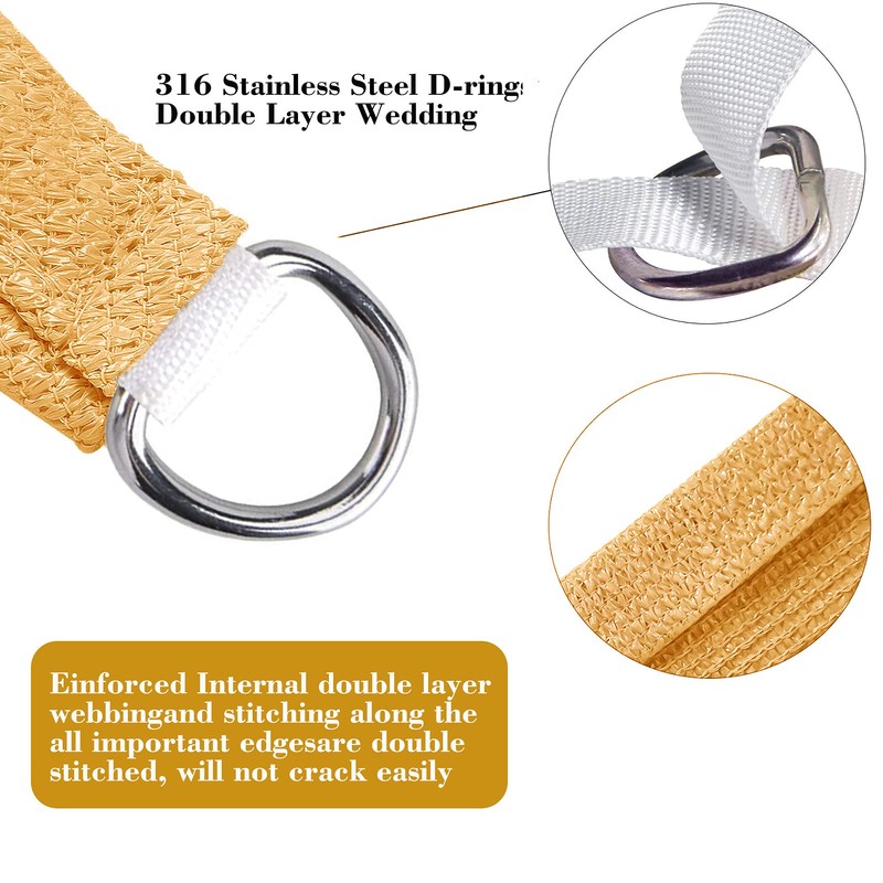 SHADESPEARE 8' x 8' x 8' Sand Triangle Sun Shade Sail Canopy Durable Fabric UV Block Awning, We Make Custom Orders