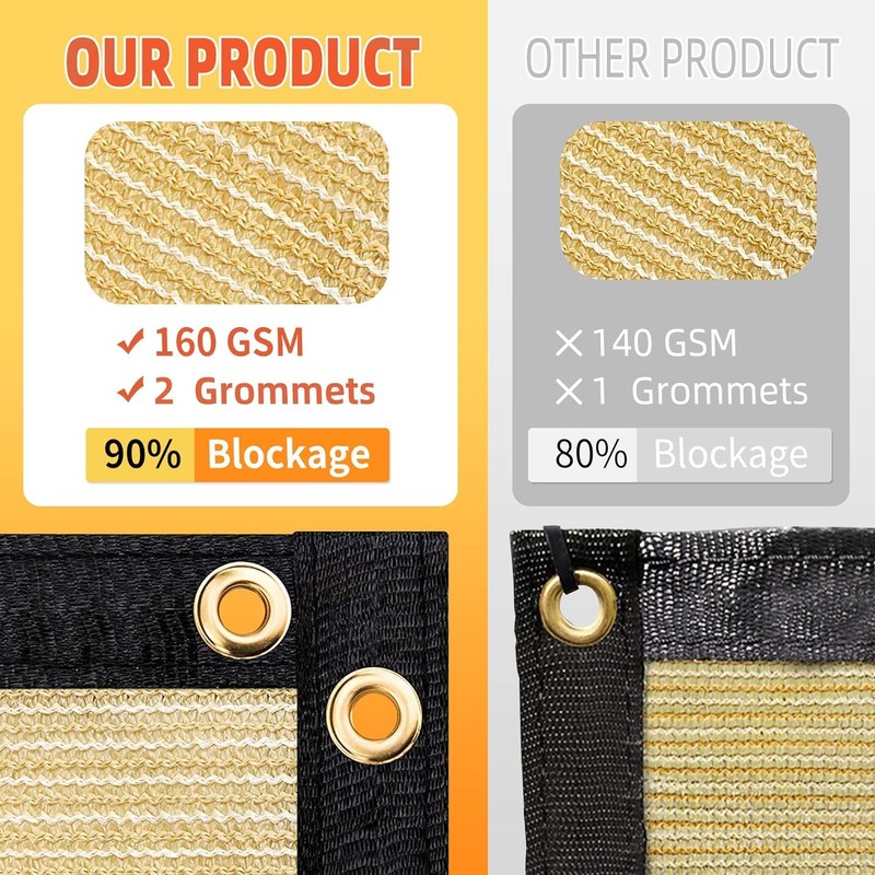 - The fabric material is made of polyethylene, offers 90% visibility blockage, it has a long lifespan under outdoor UV, we only use the virgin material, not recycled. UV-resistant compound has been added to the material, provides up to 95% UV blockage.