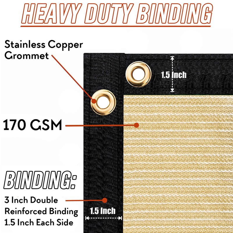 - Installation of this product is simple. The grommets can be fastened onto the fence by using included zip ties. Grommets are located on each side and the binding is double stitched in black color
