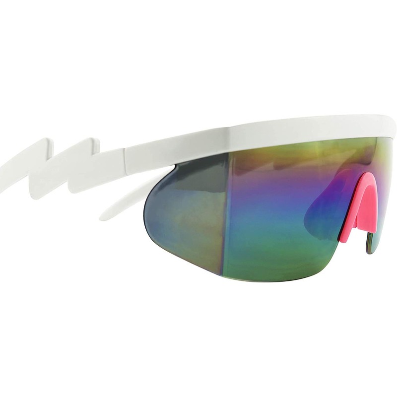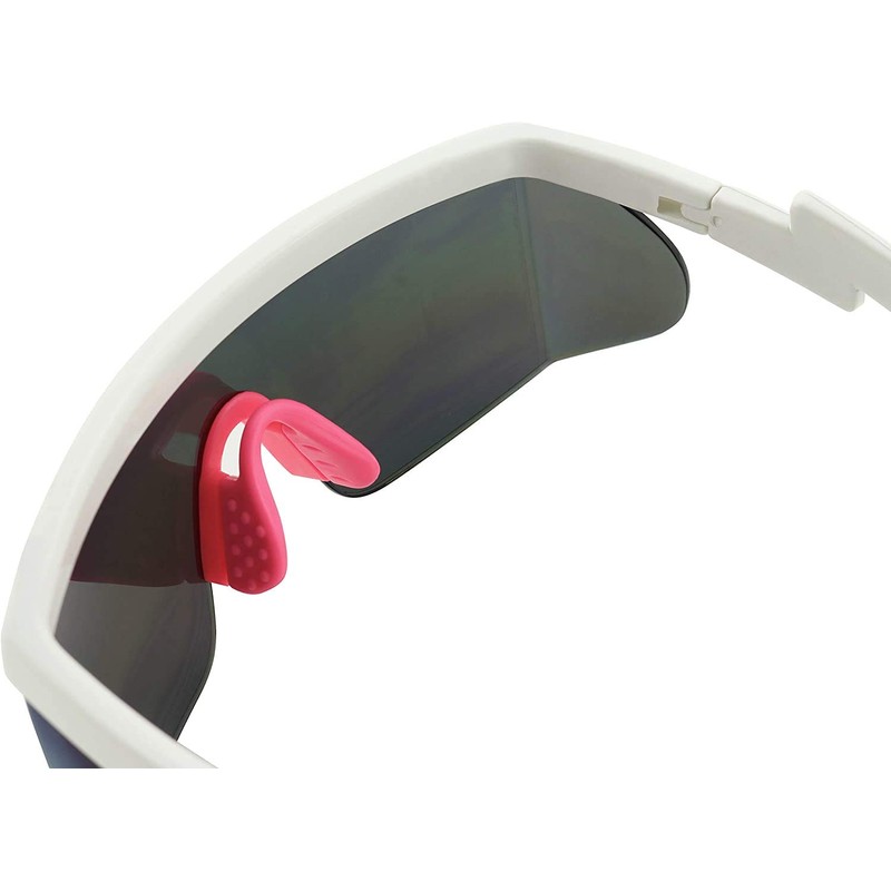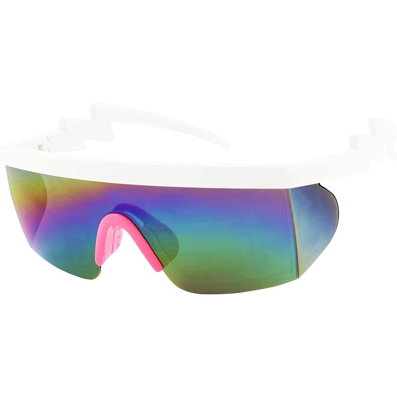 ShadyVEU Semi Rimless Neon Rainbow Mirrored Lens Sports Performance Sunglasses White Half Frame ZigZag Arms Pink Nose Pads
