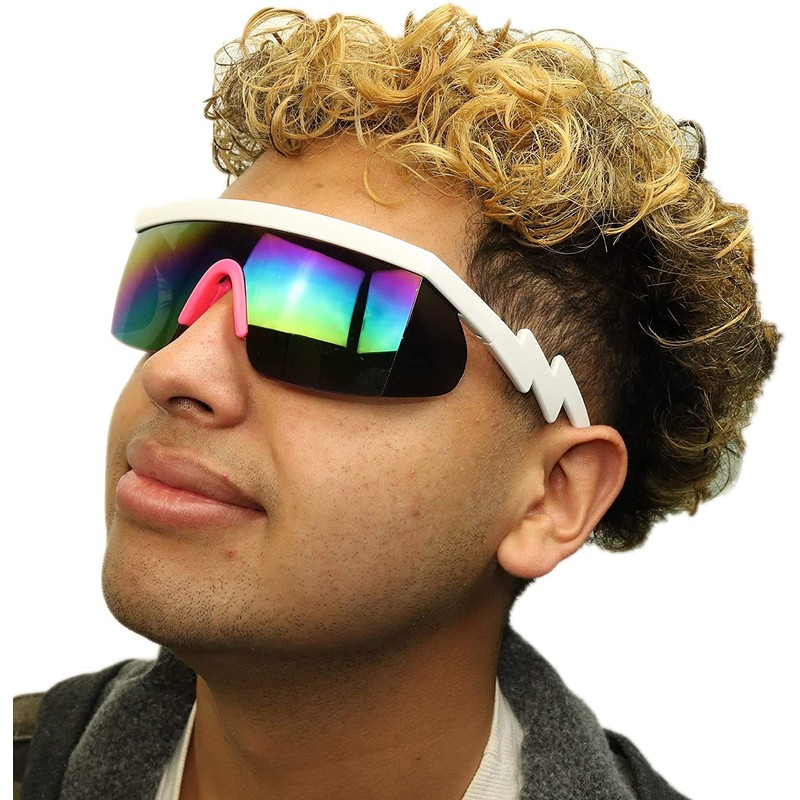 - Retro Design: Relive the 80’s with our colorful goggle inspired rave style shades for men and women. Comes with a soft colored nose piece for comfort and gives that modern accent with a retro vibe. A fashionable accessory that’s ideal for sports, outdoor activites, rave and beach parties, as well as utility and construction work.
