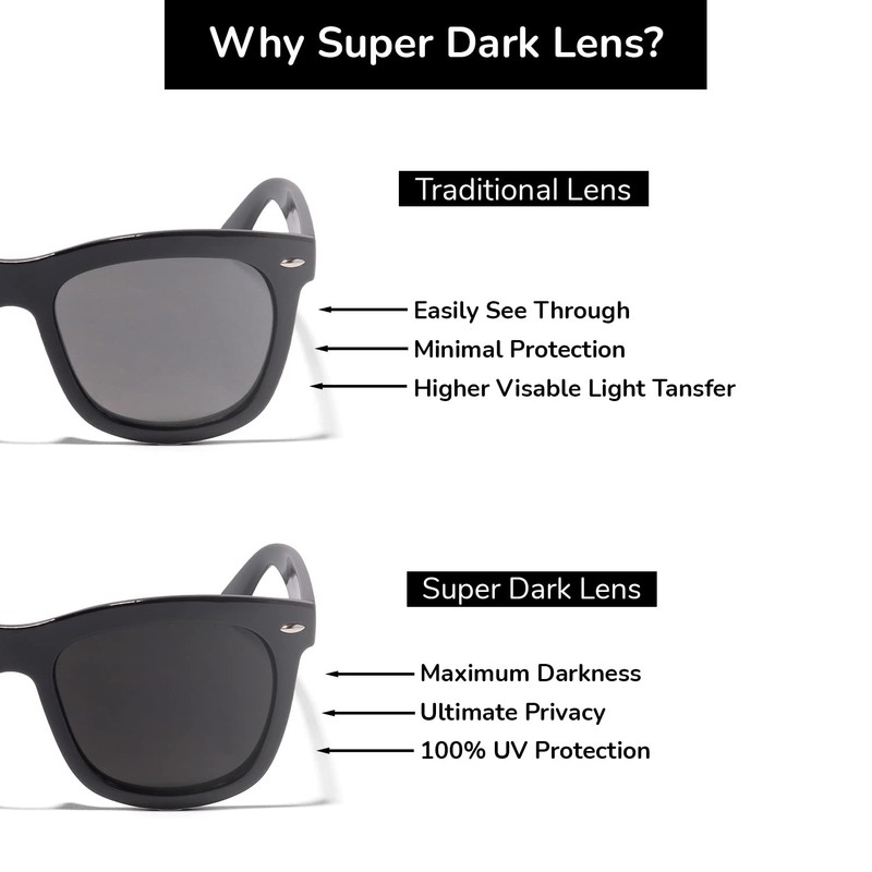- Timeless frame: Our frames have been beneficial according to users due to their extremely dark tint. Individuals claim it helps them with headaches, migraines, bright sunlight, post lasik and cataract surgery.