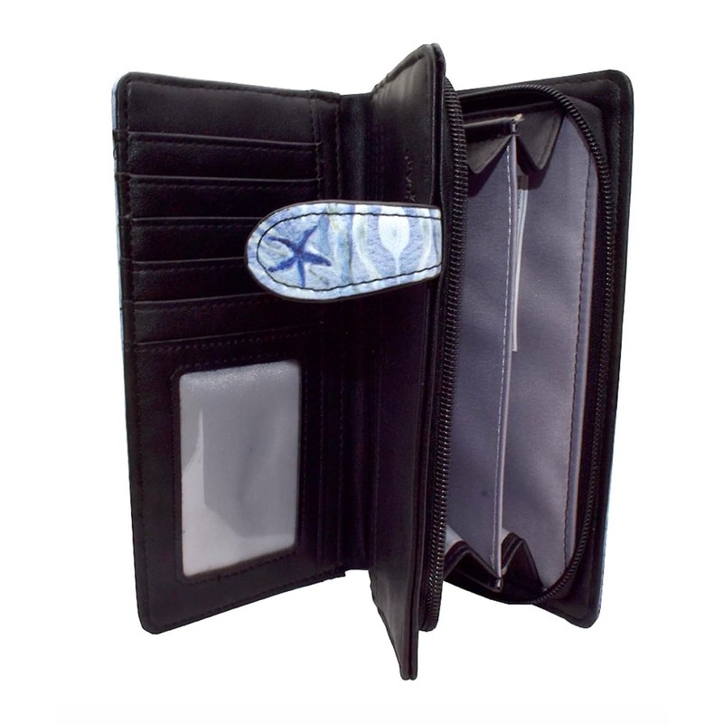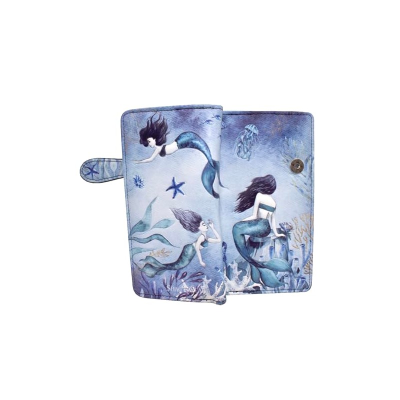Shag Wear Ocean Mermaids Large Wallet for Women and Teen Girls Vegan Faux Leather Textured Blue 7"