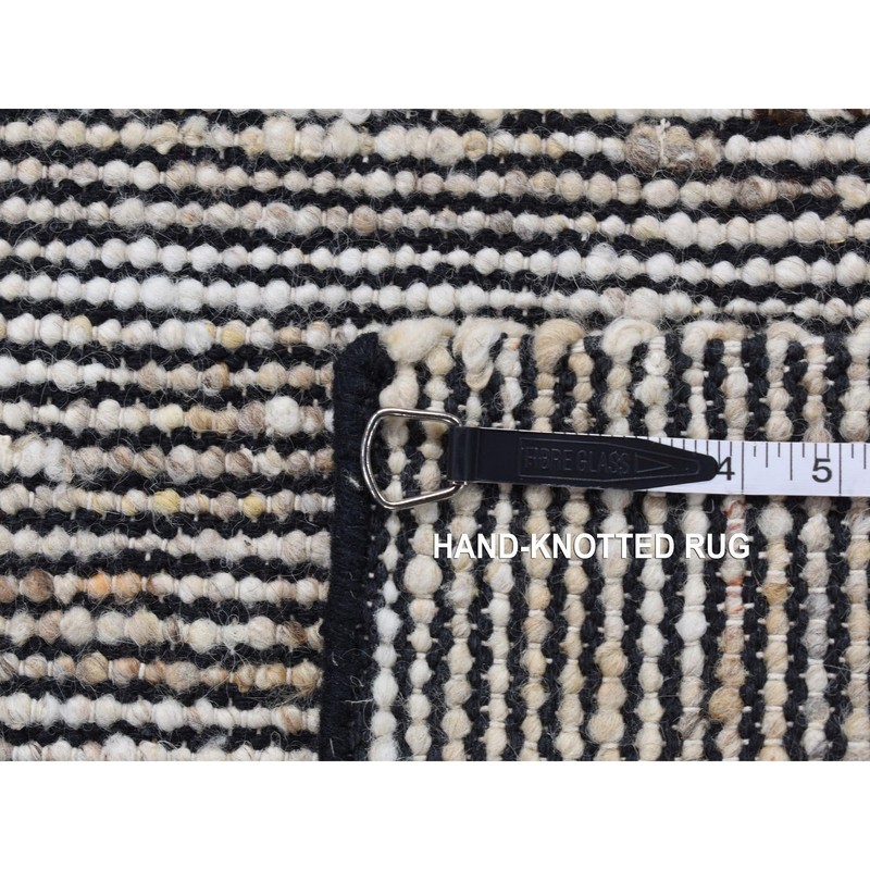 Shahbanu Rugs Ivory with Black Wool Hand Loomed Looped and Uncut Flat Pile Natural Undyed Wool Sample Fragment Oriental Rug (1'10"x2'1")