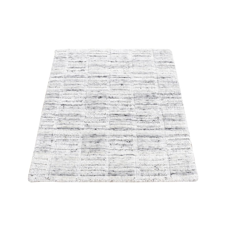 Shahbanu Rugs Pearl White Hand Loomed Modern Checkers Design Pure Wool Sample Fragment Squarish Oriental Rug (1'10"x2')