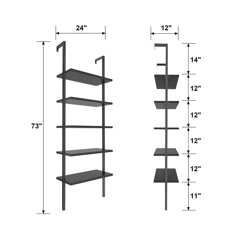 • FIVE-STORY SHELF: 24inch(W) x 73inch(H) The five-tier ladder layout makes each tier fully utilized and meets the storage needs of items of different heights and sizes. Whether it is heavy books, delicate ornaments or commonly used daily necessities, you can find a suitable storage location here, making your home environment more neat and orderly.