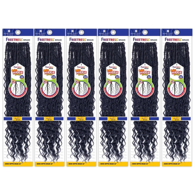 SHAKE-N-GO Synthetic Hair Crochet Braids Boho Hippie Braid 22" (6-pack, CARAMELT)
