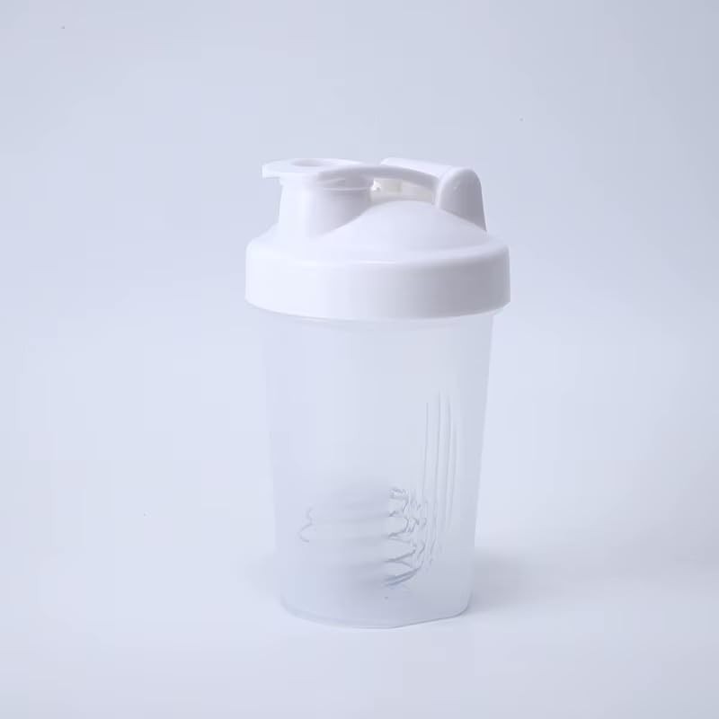 Shaker Bottle for Protein Shakes and Pre-Workout, 400ml, Clear/Black (white)