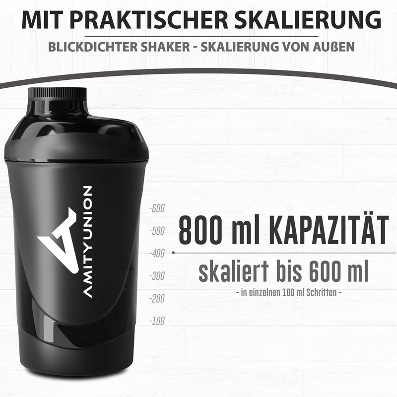 - Super large shaker capacity: The capacity of the shaker is an impressive 800 ml: Made in Europe, the material is 100% tasteless, completely BPA-free (Bisphenol A) and contains no harmful plasticisers