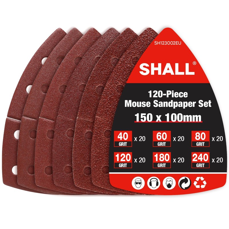 Shall SHALL 120-Piece Sanding Sheets Mouse Sanding Pads, Assorted Grits, 40, 60, 80, 120, 180,240 Mixed Grits Included, Suitable for Sander