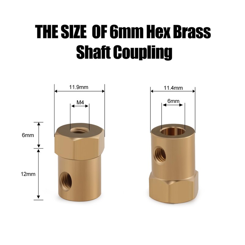 SHALUOMAN 4pcs Hex Coupler 4mm Bore Motor Hex Brass Shaft Coupling Connector for Car Model Shaft Connection RC Motor Car Wheels Tires Shaft Motor (6mm)